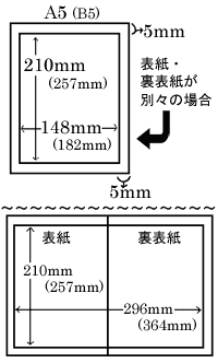 やはり周囲を5mmずつ取るので、A5なら220mm×306mm、B5なら267mm×374mmになります。