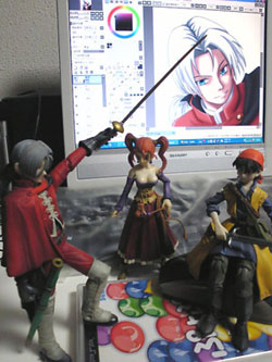 絵を描きながら、可動式フィギュアのポーズを変えて遊んでたの図。