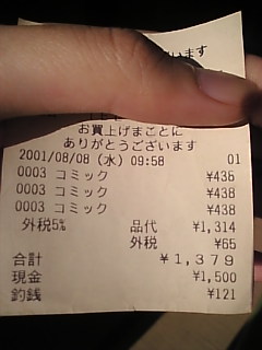 ヒントは2001.8.8と、同じ値段の本を3つ買っているということなんですが…。